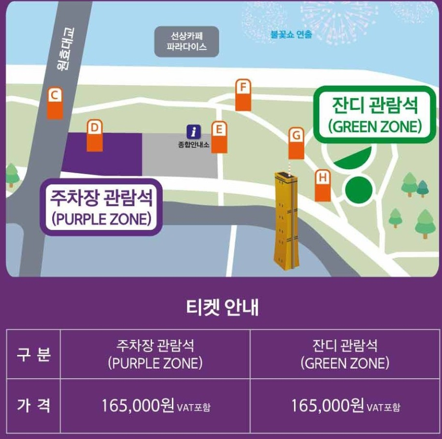 여의도에서 보실 분들이 많을 것이고, 또한 주차석에서 편하게 관람할 수 있는 유료티켓도 판매중이기에